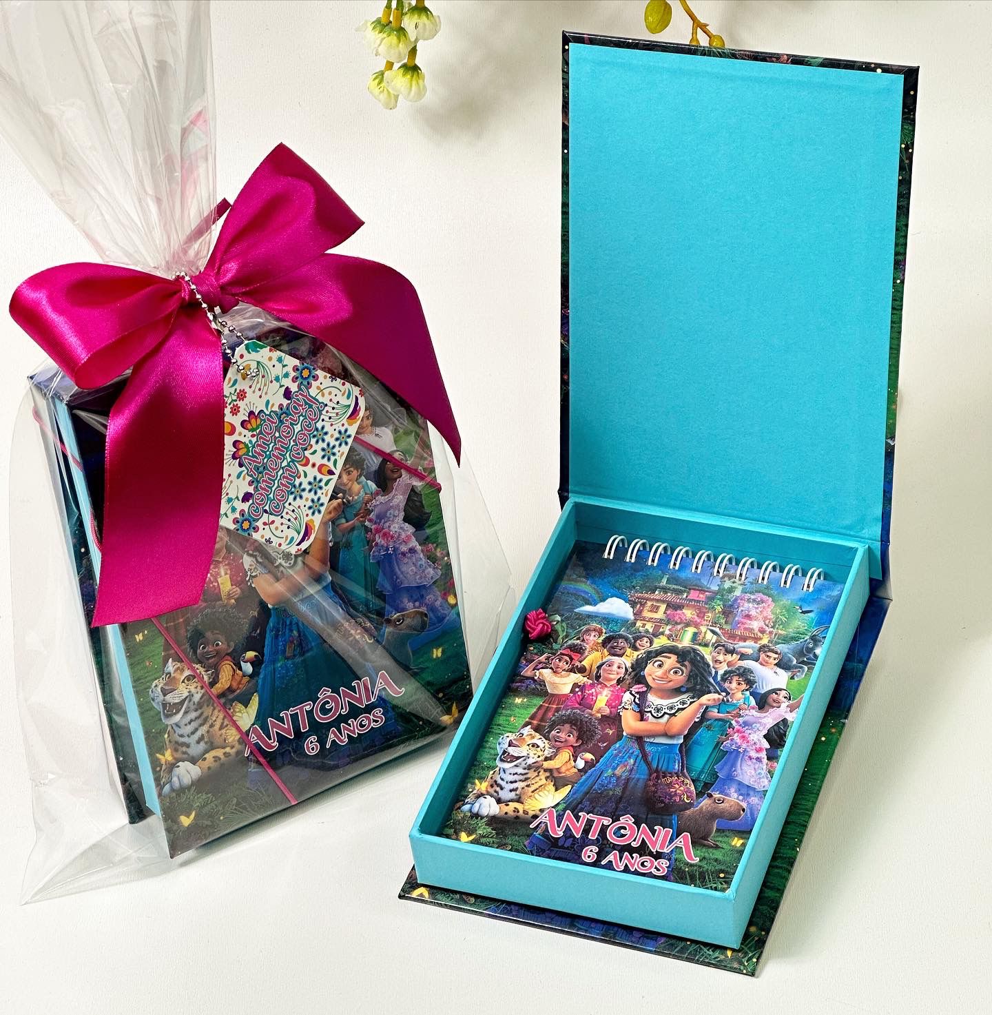 Bloquinho 10x15cm é uma caderneta premium no tamanho perfeito para bolsas e anotações rápidas. A capa dura (cartonada) é 100% personalizada por nós com o tema da sua festa ou a identidade visual da sua marca, garantindo um acabamento impecável e duradouro.