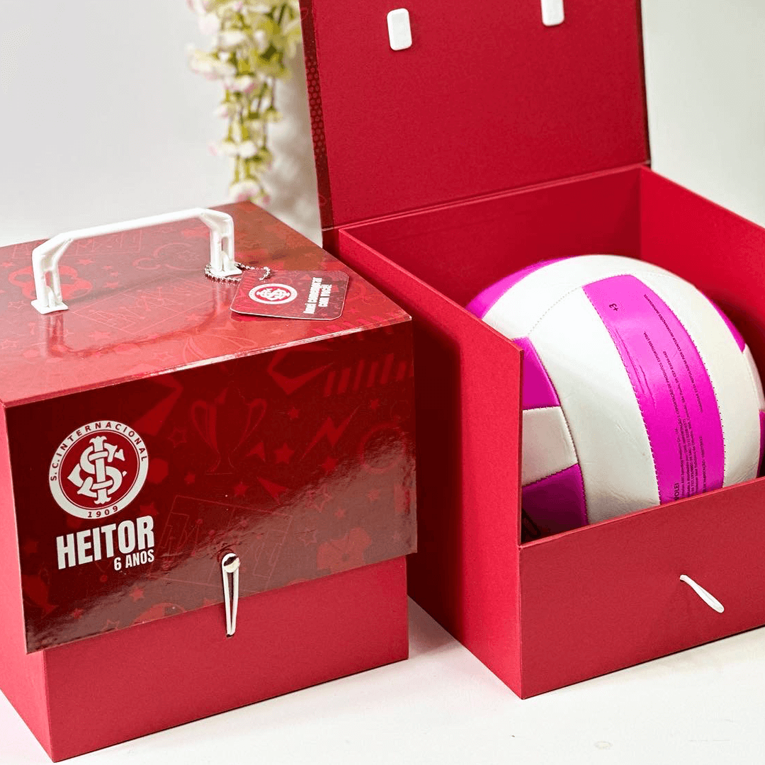 Este kit de alto impacto é composto por uma Bola de Basquete ou Vôlei (tamanho padrão, à sua escolha) e a nossa exclusiva Caixa Cartonada de Luxo, feita sob medida para proteger e valorizar o presente. A caixa possui estrutura rígida e acabamento impecável.