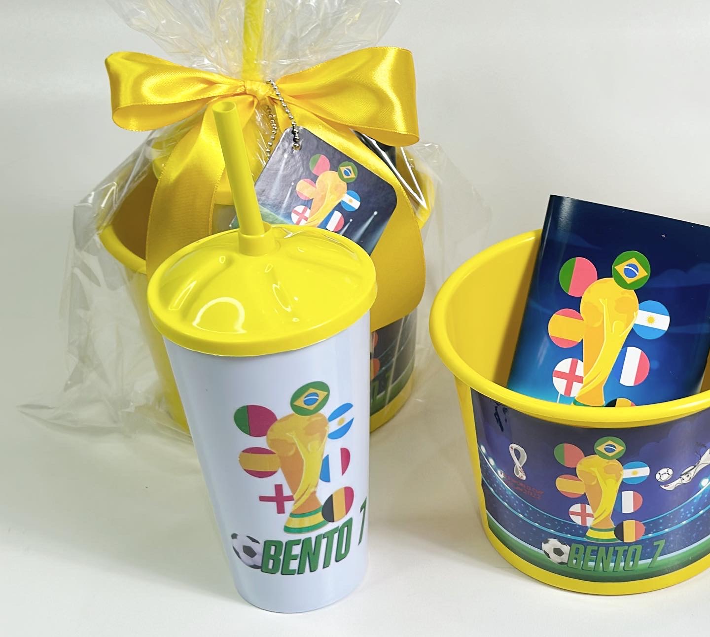 O Mini Pipoca é combinado com um Copo com Canudo e Tampa (reutilizável), que é 100% personalizado com o tema da sua festa ou marca.