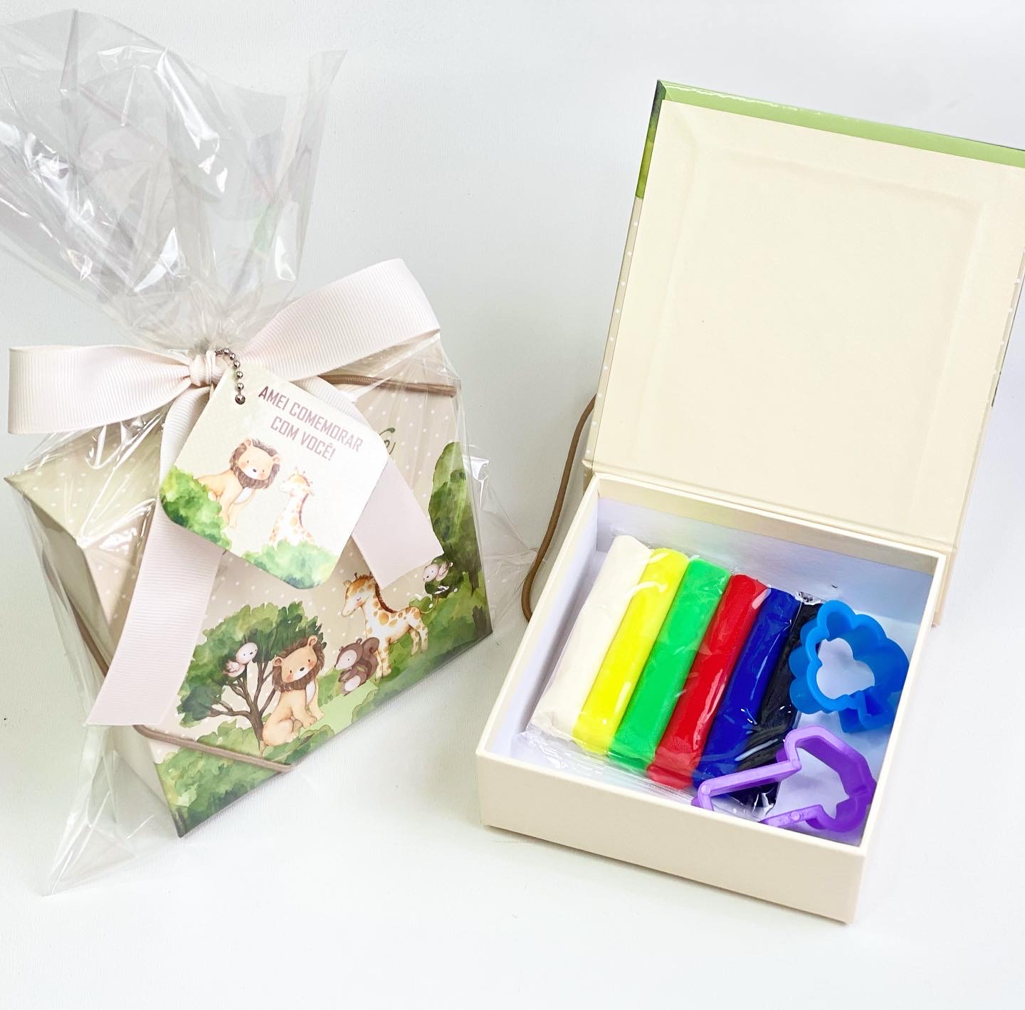 Mini Caixa é uma forma sofisticada de presentear com o clássico “kit massinha”. O kit é apresentado em uma elegante mini caixa cartonada, produzida em estrutura rígida e 100% personalizada por nós com o tema do seu evento.